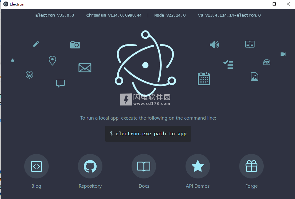 用于使用JavaScript、HTML和CSS等web技术的本地应用程序的框架。通过将Chromium和Node.js嵌入到其二进制文件,Electron允许您维护一个JavaScript代码库并创建可在Windows、macOS和Linux上运行的跨平台应用程序-无需本机开发需要经验。软件无法下载?不知道解压密码?微信关注订阅号"闪电下载"获取