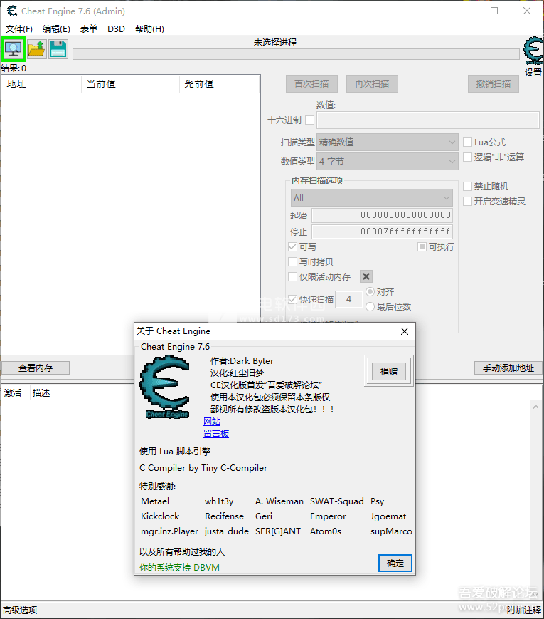 注意!注意!注意!CE运行目录不能存在中文!否则打开CE会弹出错误!!!
