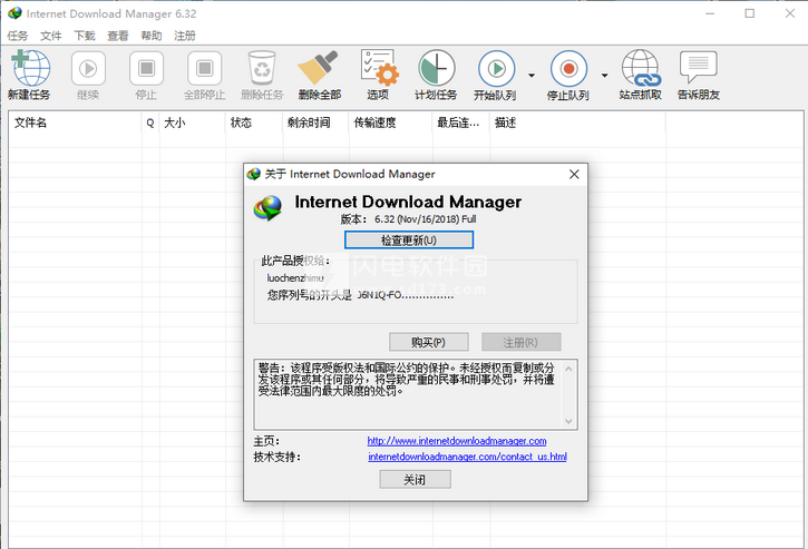 将dll劫持补丁放入Internet Download Manager 目录中。如果第一次使用,请用管理员模式运行主程序以填写注册信息。