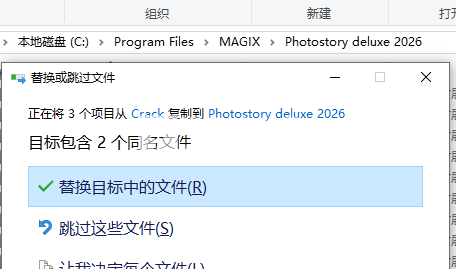 5、将crack中的补丁文件复制到安装目录中,点击替换目标中的文件