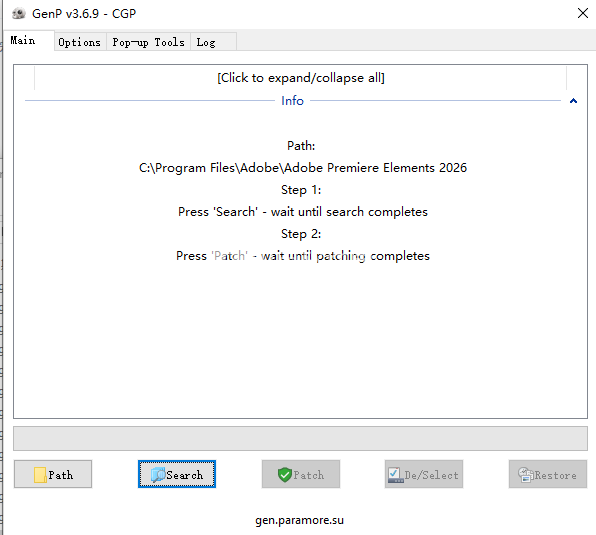 3、安装完成,不要启动,将GenP复制到安装目录中,管理员身份运行,点击search-patch