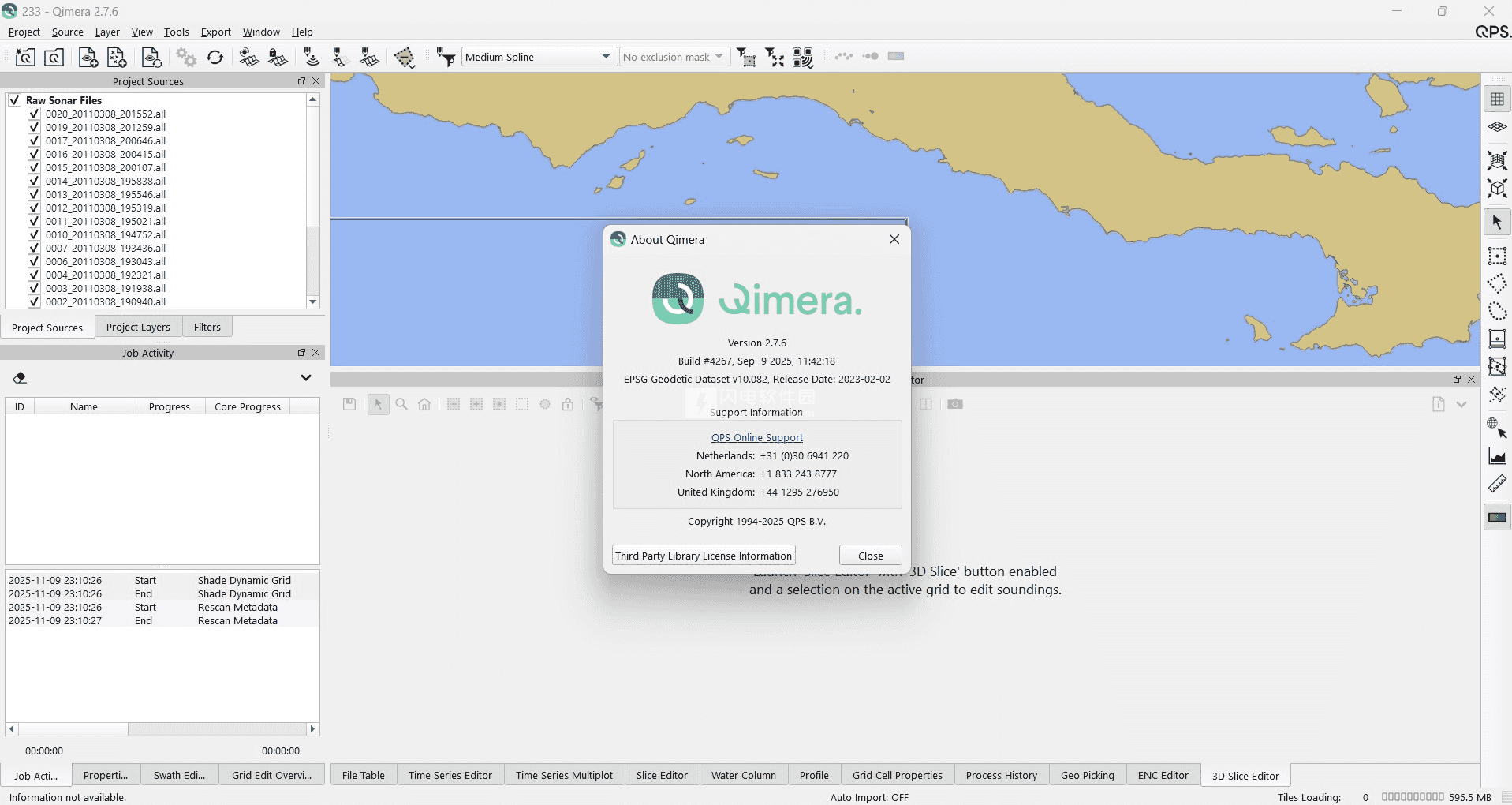 QPS Qimera破解版是声纳数据处理,使水文数据处理变得简单直观,同时还包含最先进和最前沿的工具。包含许多高级工具,包括声速分析(折射)、校准(补丁测试)和摆动测试(用于解决常见的传感器安装/集成问题)。支持主要的原始声纳文件格式,并通过使用动态工作流程,它彻底改变了数据处理方式和操作员在处理水文数据时的体验。软件中通用的新项目对话框、用于更快重新网格化的全新动态表面文件格式以及新的大地测量配置将 Qinsy 大地测量配置能力的全部功能带到 Qimera 的界面。Qimera 用户现在可以指定垂直分离模型、在协调框架之间创建复杂的客户大地转换、创建构造网格等等。Qimera 2 中的另一个新功能是将 3D 编辑器集成到切片编辑器中,为审阅者提供更完整的画面,尤其是在与主要 4D 场景匹配时。当使用基于时间/距离的 SVP 查找策略时,SVP“交叉淡入淡出”有助于平滑 SVP 演员之间的过渡。我们现在在水柱查看器中支持 R2Sonic TruePix,其中包括点数字化,以确保沉船的最小深度和寻找海底的碳氢化合物渗漏。我们在场景和切片编辑器中通过“按颜色”RGB 或 LAS 分类增强了对 LiDAR 用户的支持,并且 Qimera 中的各种过滤器现在与 LAS 分类兼容。说到过滤器,我们从点云库中添加了隔离集群移除,它可以识别独立于海底的各种数据集群并标记它们以进行移除,从而增强数据清理能力。最后,还有一个新的插件允许用户对通过无人机的运动结构 (SfM) 导出的测深点执行折射校正,从而允许使用 Qimera 一次性完成地形和测深。