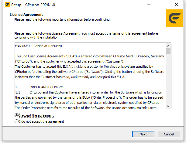 3、安装CFTurbo.2026.1.0.126 Win64版本,勾选接受协议