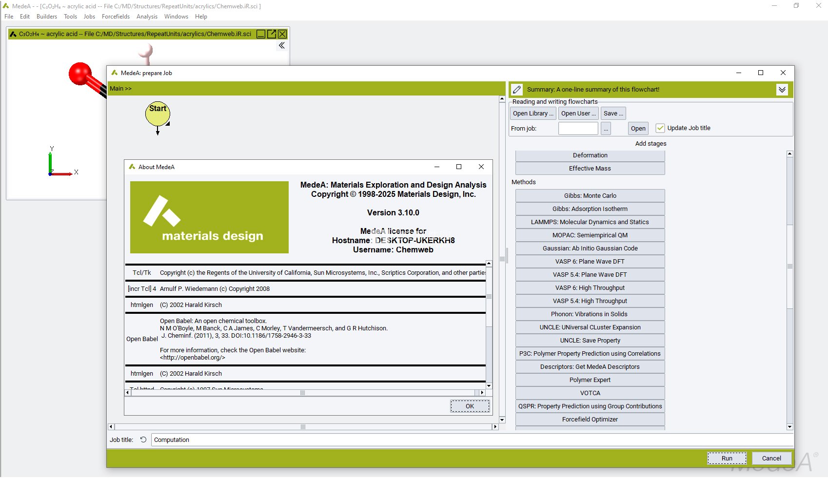 MedeA MOPAC, MedeA MOPAC GUI – 用于快速属性预测和筛选的半经验量子化学方法,图形用户界面
