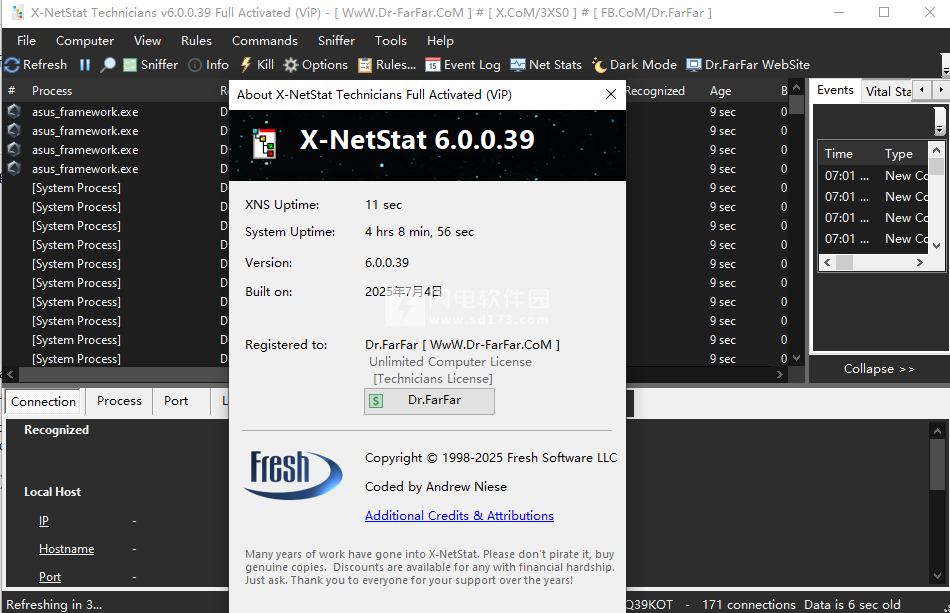 还可以从 X-NetStat 启动 SysInternals 的 Process Explorer,以显示极其详细的信息。