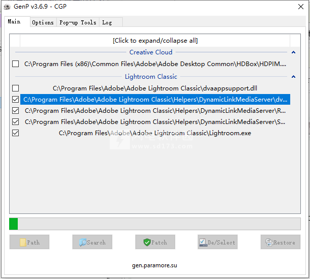 3、安装完成,管理员身份运行GenP,点击search搜索软件安装位置,点击patch进行修补