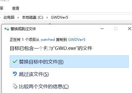 4、安装完成,不要启动,将修补过的GWD.exe复制到安装目录中,替换