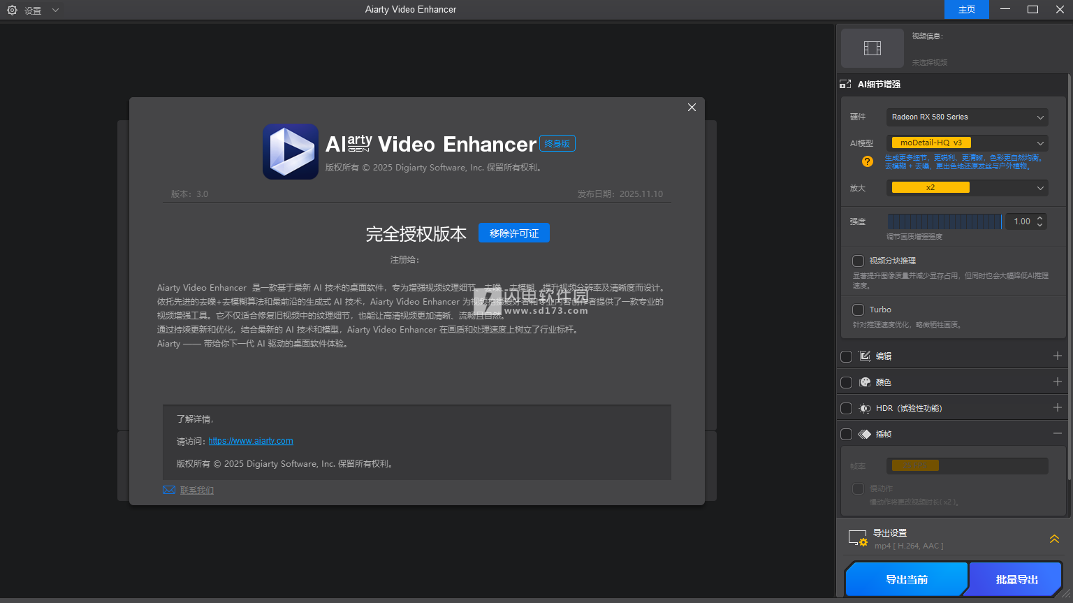 依托先进的去噪+去模糊算法和最前沿的生成式AI技术,Aiarty Video Enhancer为视拍摄爱好者和专业内容创作者提供了一款专业的视频增强工具。它不仅适合修复旧视频中的纹理细节,也能让高清视频更加清晰、流畅且自然。适通过持续更新和优化,结合最新的AI技术和模型,Aiarty Video Enhancer在画质和处理速度上树立了行业标杆。Aiarty Video Enhancer使用混合AI模型以最佳效率对视频进行升级、去噪和重新制作为2K/4K-以涡轮速度提供类似相机的细节,GPU利用率高达95%。软件无法下载?不知道解压密码?微信关注订阅号"闪电下载"获取
