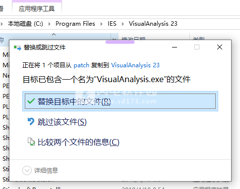 3、完成后,不要启动程序,将patch文件夹中的VisualAnalysis.exe复制到安装目录中,替换
