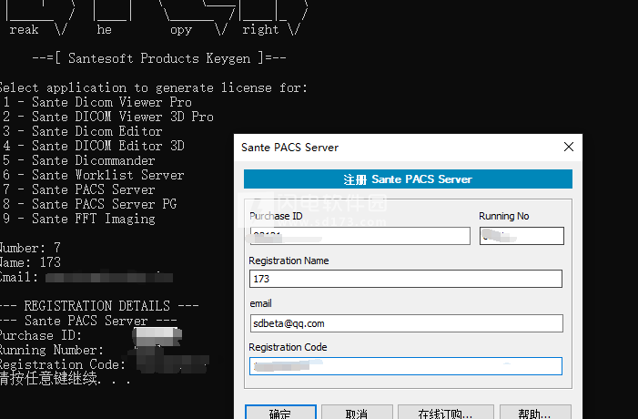 4、安装完成,使用crack中的keygen完成激活。输入要注册的软件序号,用户名、邮箱,回车生成注册信息,运行软件,点击关于-注册,将对应信息输入到软件中