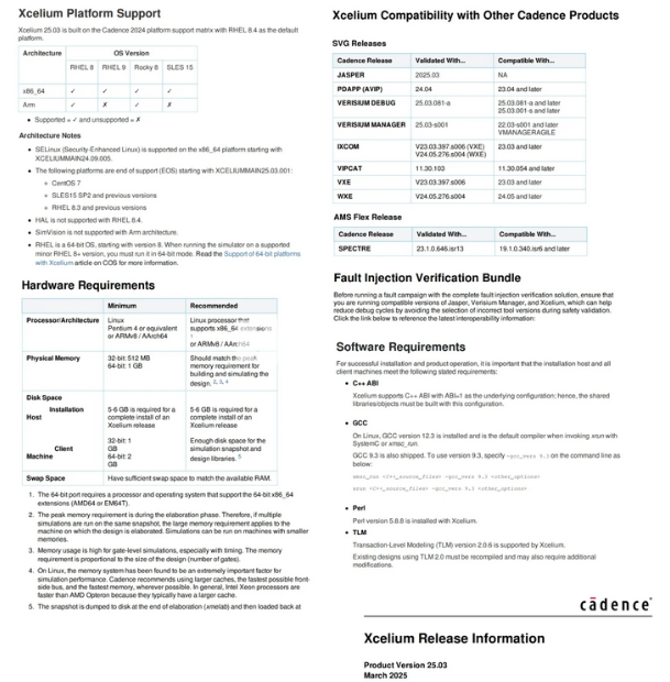 为了提高可访问性,Xcelium发布信息README整理了之前使用单独手册分发的以下内容:硬件和软件要求、安装和许可信息、新功能和增强功能以及已知问题。随着新README的发布,下面列出的单独手册已被弃用:
