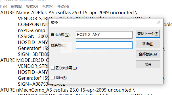4、安装完成,记事本方式打开\patch\NC250AS-99999.lic并替换所有内容