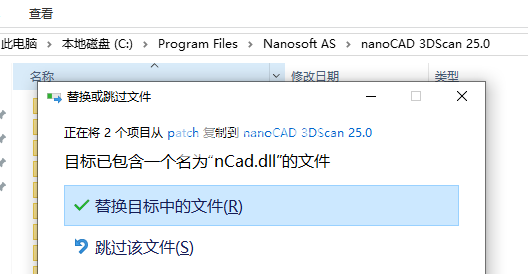 5、现在将\patch\下的文件复制到程序安装目录中(默认情况下为C:\Program Files\Nanosoft AS\nanoCAD 3DScan 25.0)