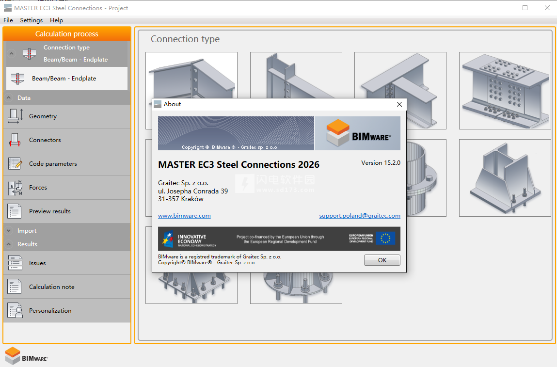 BIMware MASTER EC3 Steel Connections是优秀的钢结构连接软件,提供独特的设计、分析、计算功能,轻松对其连接的承载能力进行计算和分析以及验证,更具信心的进行设计和后续操作,您将获得详细的报告和数据信息,提供常用的材料库以及型材和连接器的数据库,允许进行丰富的自定义,支持在多种负载情况下进行同时计算操作,支持多种连接类型,支持直接导入数据,省时省力。