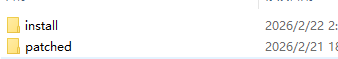 3、点击install安装,完成后将patched中的文件复制到安装目录中,替换