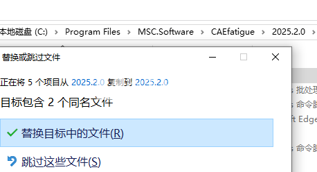 4、复制文件夹“2025.2.0” 到安装目录,(默认设置为C:\程序文件\MSC.Software\CAEfatigue\2025.2.0)覆盖