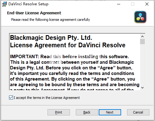1、下载并解压,卸载以前的版本。 安装DaVinci Resolve Studio,勾选接受协议选项