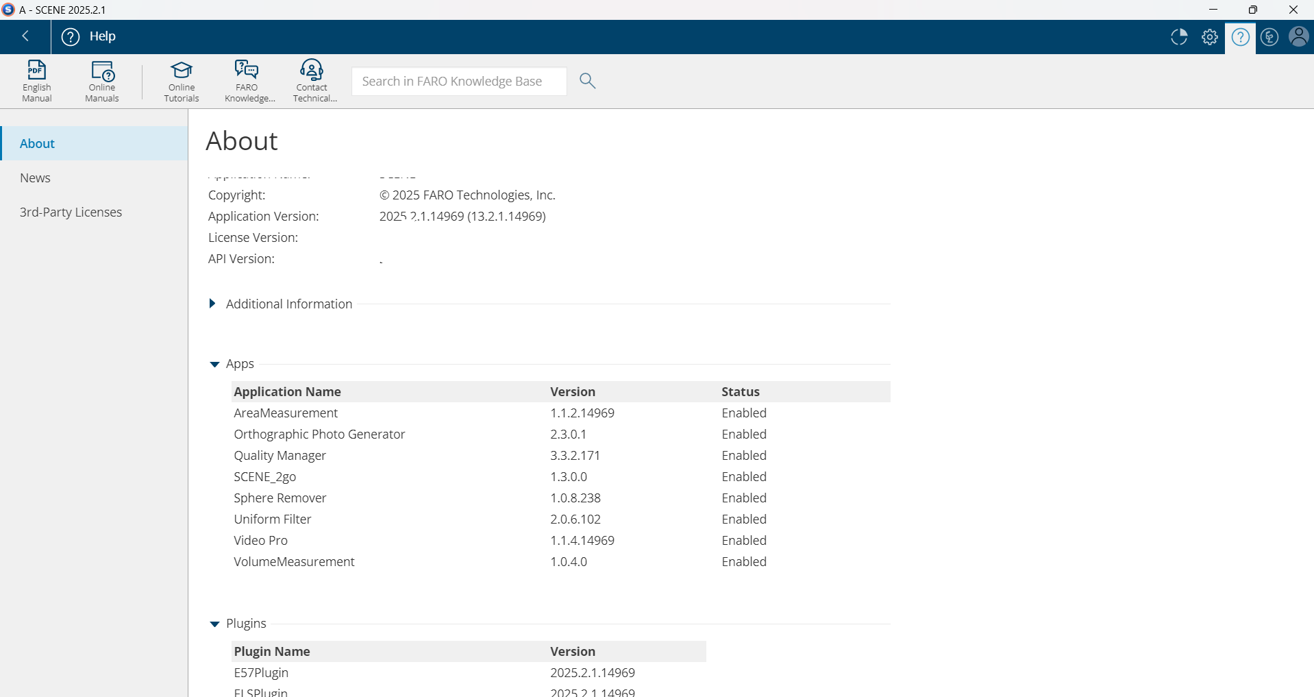 单击此按钮可打开“更新和新闻”窗口。 此窗口为您提供FARO有关SCENE和SCENE应用程序,演示视频,软件更新等的最新消息。 启动SCENE时也会显示此信息,但您可以通过单击此按钮随时查看。