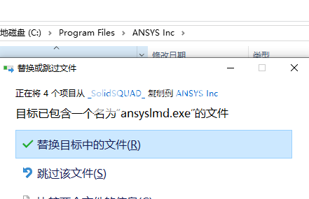 3、将Shared Files文件夹复制到默认C:\Program Files\Ansys Inc\Shared Files中,替换