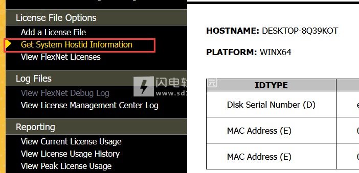 4、从开始菜单运行ANYS License Management Center,点击"Get System Hostid Information"获取系统主机ID信息。在文本编辑器中打开文件“license.txt”,将字符串“SERVER localhost XXXXXXXXXXXX 1055”中的XXXXXXXX替换为计算机的真实HOSTID(MAC地址),并保存编辑后的“license.txt”文件。