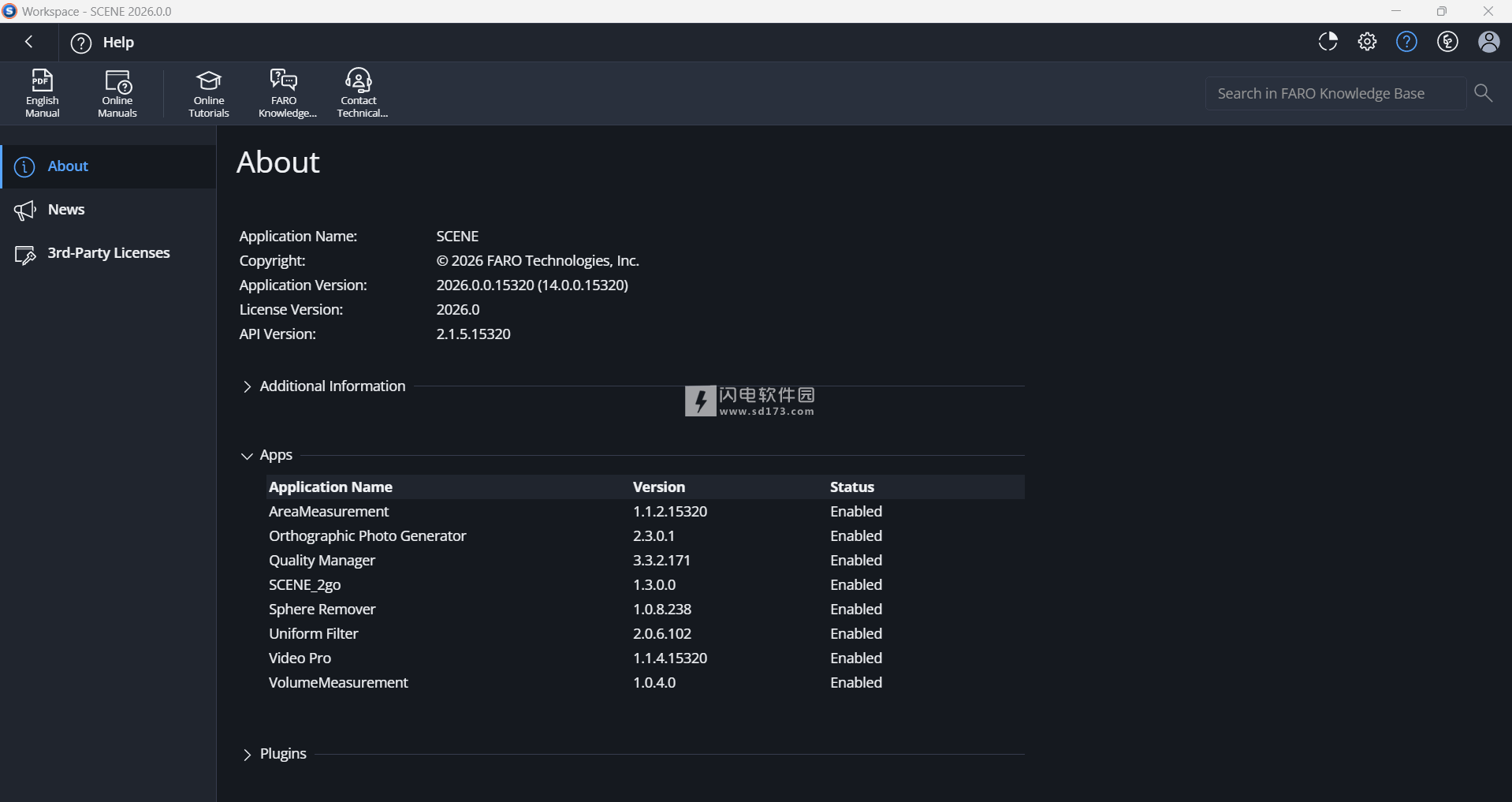 单击此按钮可打开“更新和新闻”窗口。 此窗口为您提供FARO有关SCENE和SCENE应用程序,演示视频,软件更新等的最新消息。 启动SCENE时也会显示此信息,但您可以通过单击此按钮随时查看。