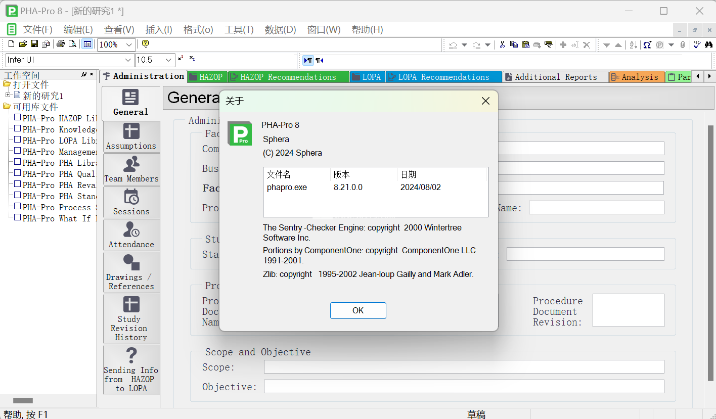 PHA-Pro软件是用于进行环境危害评估分析的程序,适合在各种比较危险的工业环境或者是场所中进行一些过程危害分析操作,由于情况的不同,所以需要不同的分析方法以针对性的进行选择,主要包括危害的原因、产生的结果、防护或者是管控、有效建议和措施几个部分,从其产生的原因,到可能产生的影响,再到如何避免或者是减少危险效果的产生,最后就是实施有效的措施来达到理想的效果!每一种评估方法的选择都要考虑到众多的因素,从而选择最保险最有效的方式来进行!您可以轻松在在PHA-Pro中创建新文件。 并提供向导来指导您完成创建过程和收集软件生成新文件所需的所有项目信息。尽可能的提供简单快速的方式完成的研究和探索!